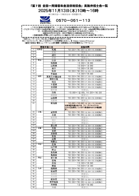 Topics ホーム > Topics > 相談会・イベント情報 > 2025.11.13(木)第7回全国一斉障害年金法律相談会 2025.11.13(木)第7回全国一斉障害年金法律相談会 2025/10/22 カテゴリー 会長声明 等(244) 人権救済申立事件『警告・勧告・要望』(33) 相談会・イベント情報(162) その他(25) 最近の投稿 2025.11.26(水) 全国一斉生活保護ホットライン 2025.11.13(木)第7回全国一斉障害年金法律相談会 佐賀県警察科学捜査研究所の職員によるDNA型鑑定に係る不正行為を非難し 、原因の究明と徹底した再発防止策の実施を求める会長声明 2025.11.22(土)13:00~17:00 日本弁護士連合会第67回人権擁護大会プレシンポジウム「みんなの学校~だれもが安心できる学びの場を考える~」 2025.11.1(土)14:00~17:00 シンポジウム「女性法律家に会ってみよう!~弁護士・裁判官・検察官という仕事~」 月別投稿一覧 月を選択 2025年10月 (2) 2025年9月 (1) 2025年8月 (1) 2025年7月 (2) 2025年6月 (3) 2025年4月 (1) 2025年3月 (1) 2025年2月 (1) 2024年12月 (1) 2024年11月 (1) 2024年10月 (1) 2024年9月 (2) 2024年8月 (2) 2024年6月 (4) 2024年5月 (3) 2024年4月 (1) 2024年2月 (1) 2024年1月 (1) 2023年11月 (3) 2023年10月 (3) 2023年8月 (2) 2023年6月 (4) 2023年5月 (1) 2023年3月 (1) 2023年2月 (1) 2022年12月 (3) 2022年11月 (1) 2022年10月 (2) 2022年9月 (1) 2022年8月 (2) 2022年7月 (2) 2022年6月 (3) 2022年5月 (4) 2022年4月 (2) 2022年3月 (1) 2021年12月 (1) 2021年11月 (5) 2021年10月 (1) 2021年9月 (2) 2021年8月 (2) 2021年6月 (7) 2021年5月 (1) 2021年3月 (2) 2021年2月 (5) 2021年1月 (1) 2020年11月 (2) 2020年10月 (6) 2020年8月 (1) 2020年7月 (1) 2020年6月 (3) 2020年5月 (2) 2020年4月 (2) 2020年3月 (2) 2020年2月 (2) 2020年1月 (2) 2019年12月 (1) 2019年11月 (2) 2019年10月 (5) 2019年9月 (3) 2019年8月 (2) 2019年6月 (3) 2019年5月 (2) 2019年4月 (2) 2019年3月 (4) 2019年2月 (2) 2019年1月 (2) 2018年11月 (2) 2018年10月 (2) 2018年9月 (1) 2018年8月 (3) 2018年7月 (2) 2018年6月 (3) 2018年5月 (2) 2018年4月 (1) 2018年2月 (4) 2017年12月 (1) 2015年10月 (1) 2014年3月 (1)