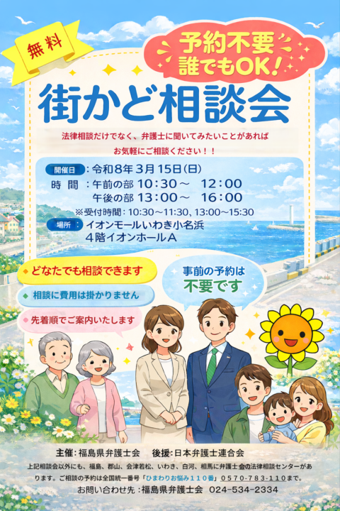 Topics ホーム > Topics > 相談会・イベント情報 > 街かど相談会開催 令和8年3月15日(日) 街かど相談会開催 令和8年3月15日(日) 2026/02/26 カテゴリー 会長声明 等(245) 人権救済申立事件『警告・勧告・要望』(34) 相談会・イベント情報(164) その他(25) 最近の投稿 街かど相談会開催 令和8年3月15日(日) 2026.3.5(木)13:00~16:00 全国一斉暮らしとこころの相談会 法制審議会刑事法(再審関係)部会の審議の進め方に抗議し、議員立法による再審法改正の実現を求める会長声明 被収容者の郵送戸籍等請求を信書通数制限に含めないことを求める要望 2025.11.26(水) 全国一斉生活保護ホットライン ※終了しました 月別投稿一覧 月を選択 2026年2月 (2) 2025年10月 (2) 2025年9月 (1) 2025年8月 (1) 2025年7月 (2) 2025年6月 (3) 2025年4月 (1) 2025年3月 (1) 2025年2月 (1) 2024年12月 (1) 2024年11月 (1) 2024年10月 (1) 2024年9月 (2) 2024年8月 (2) 2024年6月 (4) 2024年5月 (3) 2024年4月 (1) 2024年2月 (1) 2024年1月 (1) 2023年11月 (3) 2023年10月 (3) 2023年8月 (2) 2023年6月 (4) 2023年5月 (1) 2023年3月 (1) 2023年2月 (1) 2022年12月 (3) 2022年11月 (1) 2022年10月 (2) 2022年9月 (1) 2022年8月 (2) 2022年7月 (2) 2022年6月 (3) 2022年5月 (4) 2022年4月 (2) 2022年3月 (1) 2021年12月 (1) 2021年11月 (5) 2021年10月 (1) 2021年9月 (2) 2021年8月 (2) 2021年6月 (7) 2021年5月 (1) 2021年3月 (2) 2021年2月 (5) 2021年1月 (1) 2020年11月 (2) 2020年10月 (6) 2020年8月 (1) 2020年7月 (1) 2020年6月 (3) 2020年5月 (2) 2020年4月 (2) 2020年3月 (2) 2020年2月 (2) 2020年1月 (2) 2019年12月 (1) 2019年11月 (2) 2019年10月 (5) 2019年9月 (3) 2019年8月 (2) 2019年6月 (3) 2019年5月 (2) 2019年4月 (2) 2019年3月 (4) 2019年2月 (2) 2019年1月 (2) 2018年11月 (2) 2018年10月 (2) 2018年9月 (1) 2018年8月 (3) 2018年7月 (2) 2018年6月 (3) 2018年5月 (2) 2018年4月 (1) 2018年2月 (4) 2017年12月 (1) 2015年10月 (1) 2014年3月 (1)